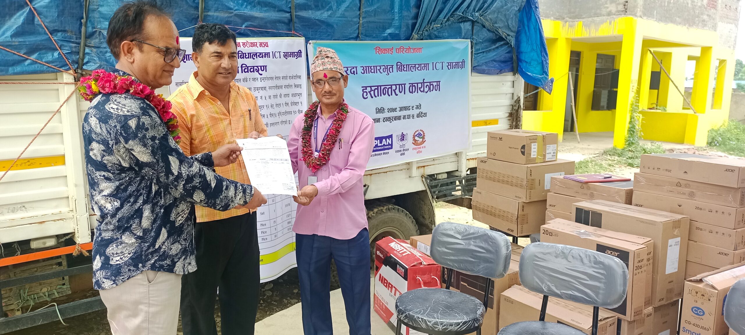 बर्दिया / शिक्षामा गुणस्तर ल्याउनको लागि विद्यालयमा आईसीटी सामाग्री वितरण गरिएको छ । प्लान इन्टरनेशनल नेपाल तथा सामाजिक सचेतन सरोकार मंच स्याक नेपाल बाँकेको आर्थिक साझेदारि तथा ठाकुरबाबा नगरपालीकाको समन्वयमा शारदा आधारभुत बिधालयमा आइसिटी सामाग्री सहयोग गरिएको छ ।
