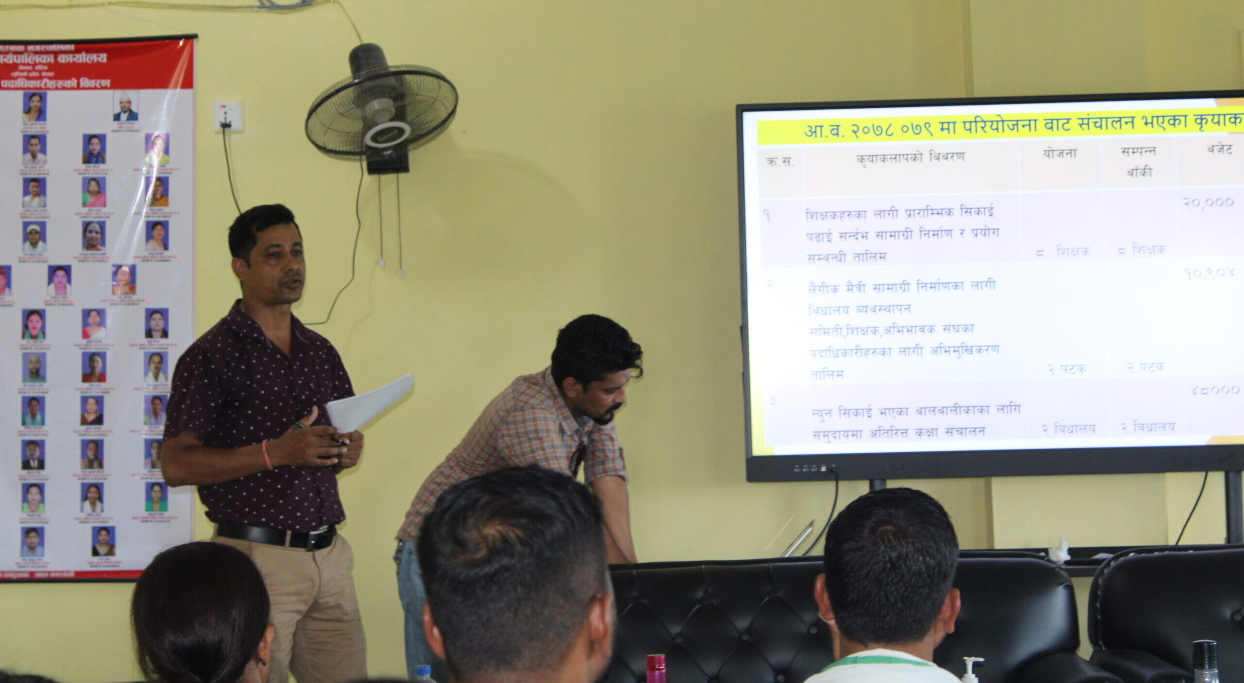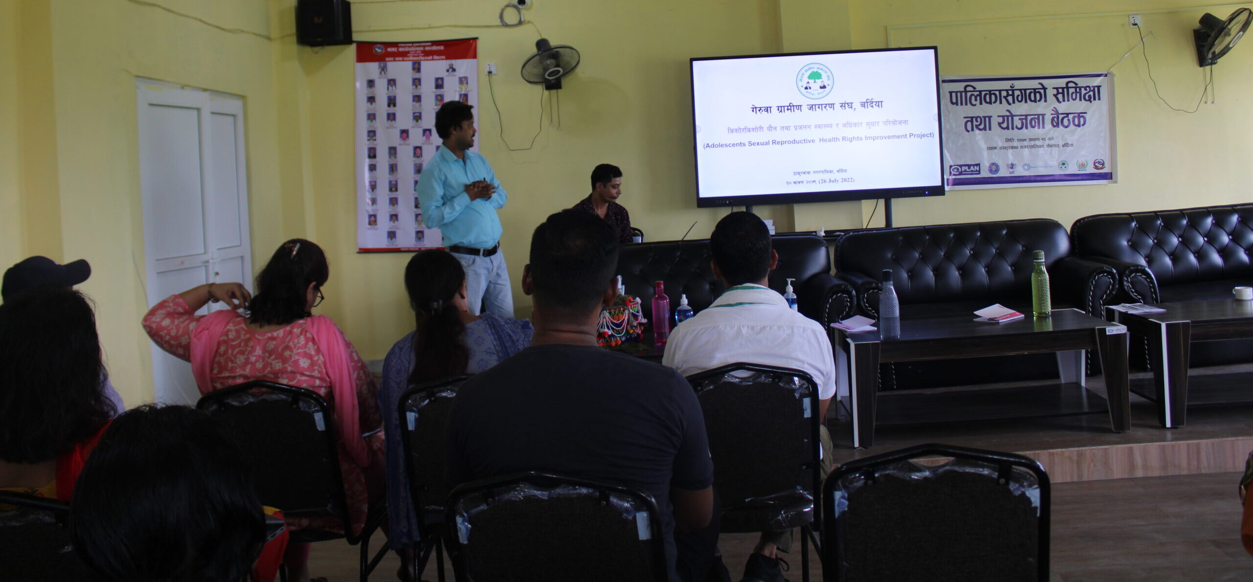प्लान इन्टरनेशनल नेपालको साझेदारीमा सन्चालित परियोजनाहरु बारेमा थारु महिला उत्थान केन्द्र गुलरियाका नरेश चौधरी, गेरुवा ग्रामिण जागरण संघका रामरुप कौशल, बाँके युनेस्को क्लबका डम्मर परियार, भेरी वातावरणीय बिशिष्टता समुह (बि–ग्रुप) बाल विवाह न्युनीकरण परियोजनाका परियोजना प्रबन्धक जगदिश थापा,सामाजिक सचेतन सरोकार मञ्च (स्याक नेपाल)का लक्ष्मी प्रसाद शर्मा, शेषकान्त शर्मा, बाके युनेस्को क्लबका कन्चन दहितले आ– आफना संस्थाले सम्पन्न गरेको क्रियाकलापहरु आगामी बर्षमा आयोजना गर्ने क्रियाकलापहरु बारे प्रष्ट पारेका थिए ।