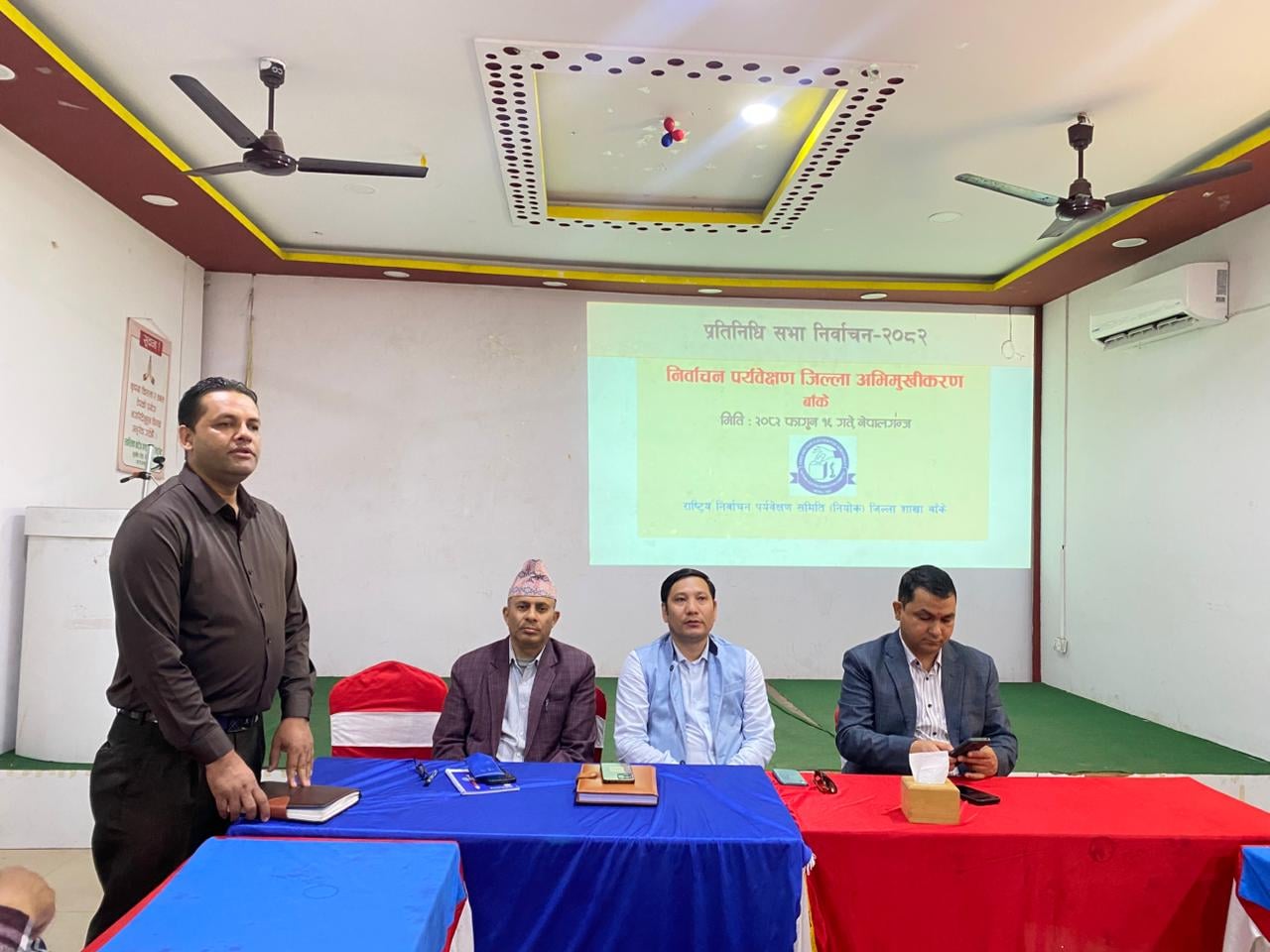 प्रर्यबेक्षकहरुलाई नियोक बाँकेको अभिमुखिकरण