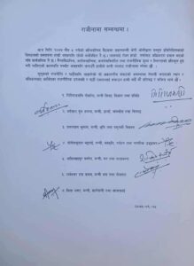 काठमाडौं । संसद विघटनको विरोध गर्दै नेपाल सरकारका सात मन्त्रीले सामूहिक राजीनामा दिएका छन् । सत्तारुढ नेपाल कम्युनिस्ट पार्टी (नेकपा)मा कार्यकारी अध्यक्ष पुष्पकमल दाहाल प्रचण्ड र वरिष्ठ नेता माधवकुमार नेपाल निकट मन्त्रीहरुले राजीनामा दिएका हुन् ।
