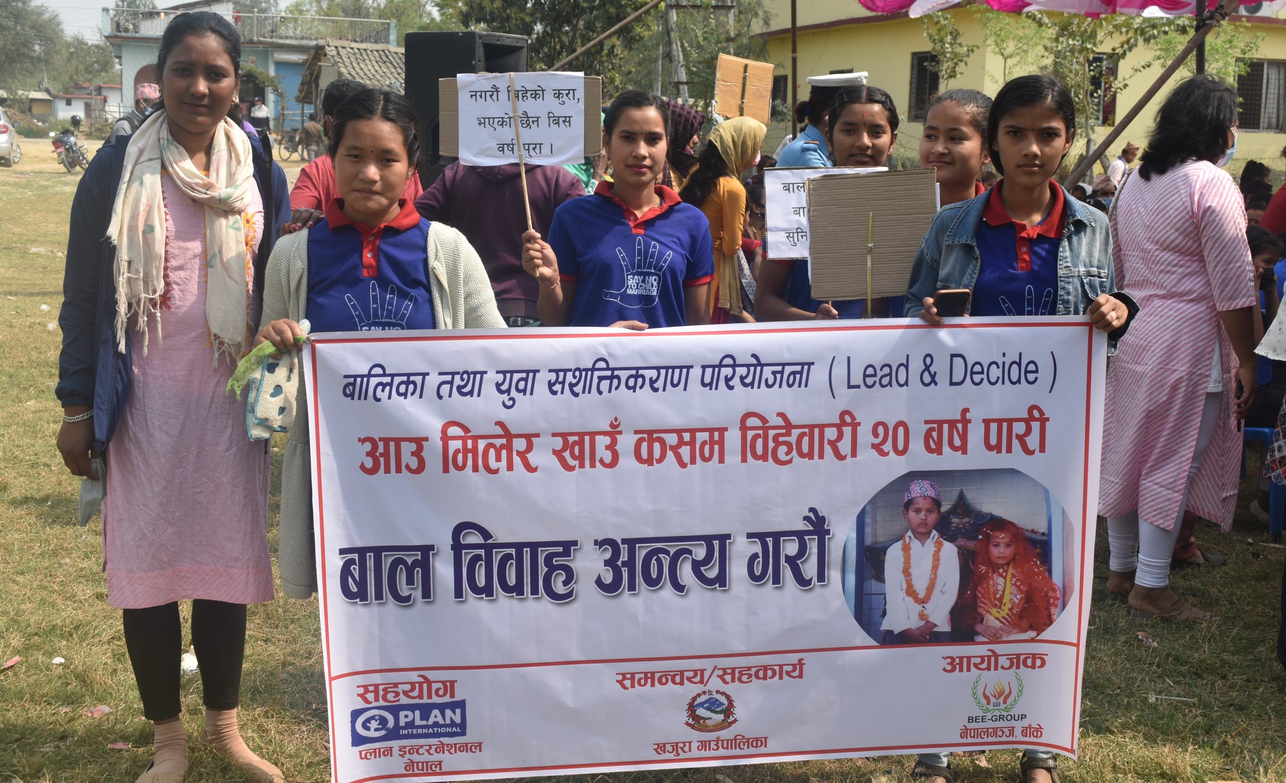 खजुरा–३ का वडा अध्यक्ष कान्तुराम गौतमको अध्यक्षतामा सम्पन्न बालविवाह मुक्त घोषणा कार्यक्रममा खजुरा गाउँपालिका उपाध्यक्ष एकमाया विक, प्लान इन्टरनेशनल नेपालकी कर्णाली प्रदेश संयोजक मीना पराजुली, स्याक नेपाल बाँकेका अध्यक्ष शिवलाल पाण्डे, खजुरा गाउँपालिका कानुनी सल्लाहकार विकास आचार्य, वडा सदस्य देउमाया थापा मगर, लगनशील किशोरी क्लबकी अध्यक्ष मञ्जु थापा मगरलगायतले बालविवाहविरुद्ध आआफना धारणा राखेका थिए ।