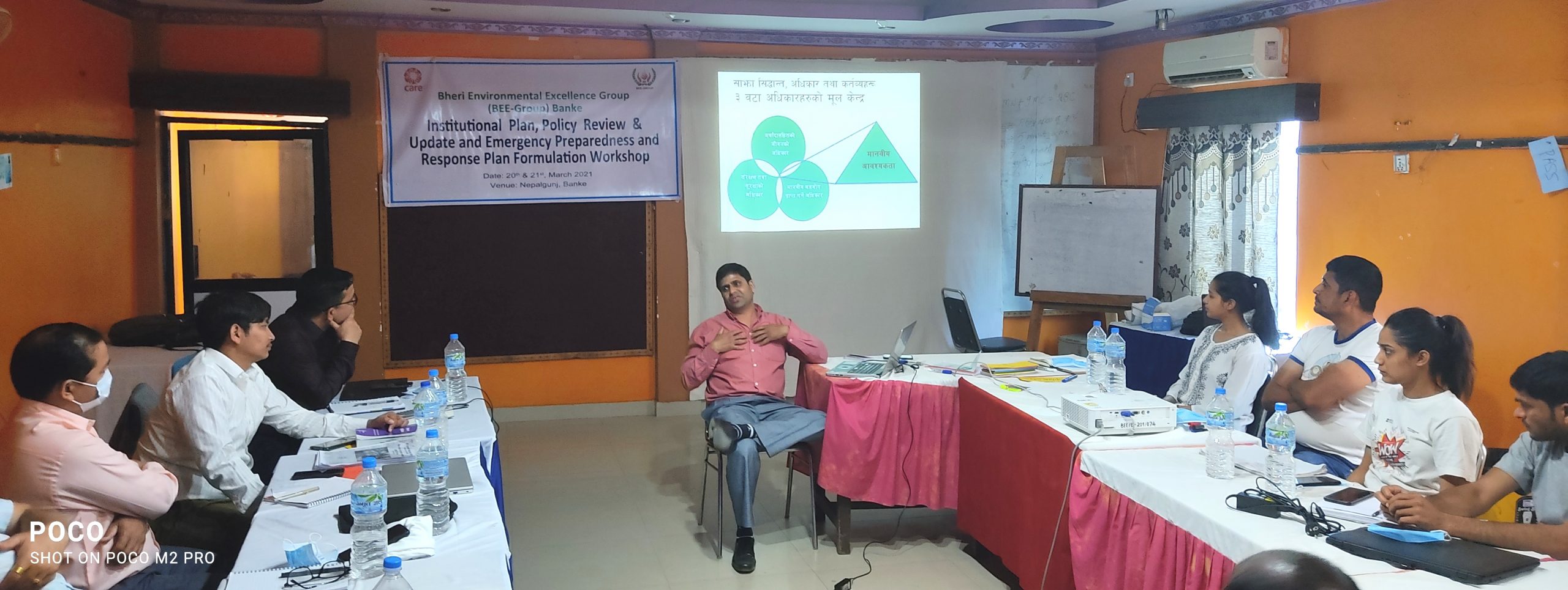 नेपालगन्ज / भेरी वातावरणीय विशिष्टता समुह(बी–ग्रुप) बाँकेले केयर नेपालको साझेदारीमा सन्चालित मानवीय सहयोग साझेदारी प्रवद्र्धन मन्च परियोजना अन्र्तगत मानवीय प्रतिकार्यमा आधारित विपद् व्यवस्थापन तथा नीतिगत पुनरावलोकन सम्वन्धी २ दिने कार्यशाला गोष्ठी नेपालगन्जमा सम्पन्न भएको छ ।