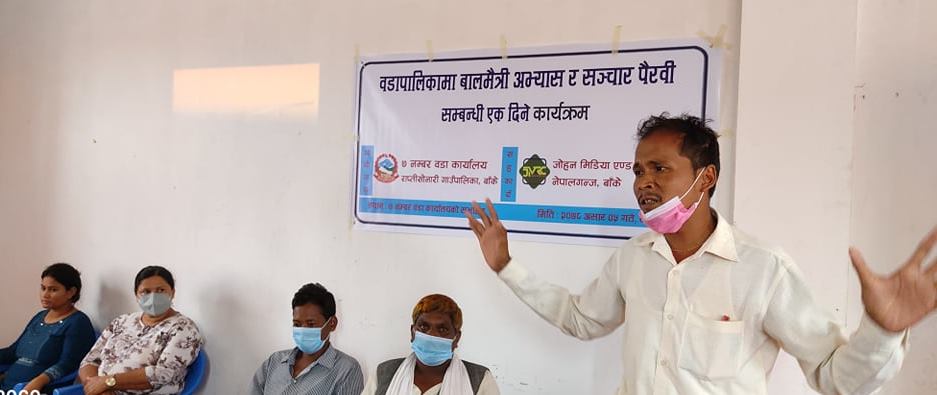 बाँके । राप्तीसोनारी राप्तीसोनारी वडा नं.७ मा आज शनिबार ‘वडापालिकामा बालमैत्री अभ्यास र सञ्चार पैरवी’ सम्बन्धी एक दिने कार्यक्रम आज सम्पन्न भएको छ । वडा नं.७ को आयोजना तथा जोहन मिडिया एण्ड रिसर्च सेन्टरको आयोजनामा कार्यक्रम सम्पन्न भएको हो ।