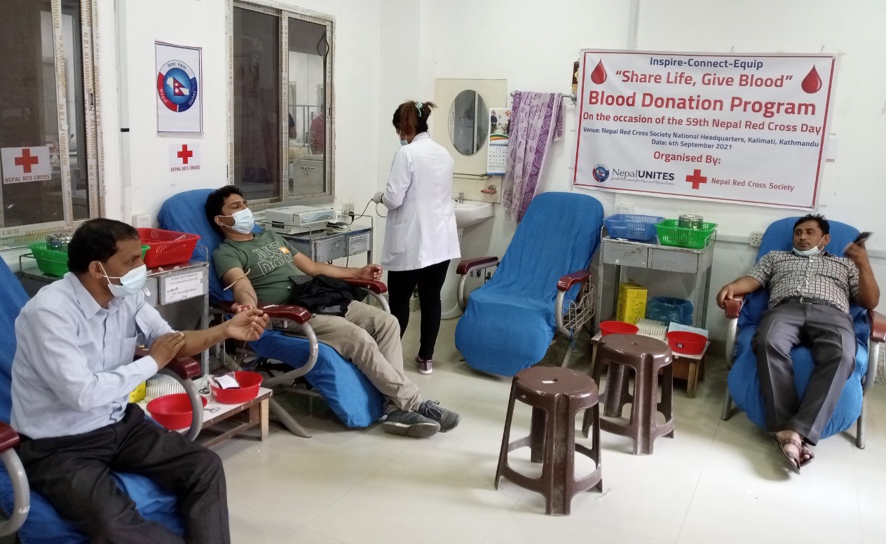 काठमाडौँ / नेपाल युनाइट्स र नेपाल रेडक्रस सोसाइटीको संयुक्त आयोजनामा ५९ औँ नेपाल रेडक्रस दिवसको अवसरमा रक्तदान कार्यक्रम आयोजना सम्पन्न भएको छ । नेपाली फिल्म निर्देशक यादव कुमार भट्टराईले रक्तदान गरी रक्तदान कार्यक्रमको उद्घाटन गरिएको थियो । विभिन्न रोगको उपचार तथा शल्यक्रिया गर्दा, दुर्घटना हुँदा तथा महिलाहरुको प्रसुतिको बेला रगत अत्यावश्यक हुने र रगतको अभावलाई केहि हद सम्म कम गर्ने उद्देश्यले रक्तदान कार्यक्रम आयोजना गरिएका आयोजक संस्था नेपाल युनाइट्सका राष्ट्रिय निर्देशक मोहम्मद आयतुल्ला रहमानले बताउनुभयो ।
