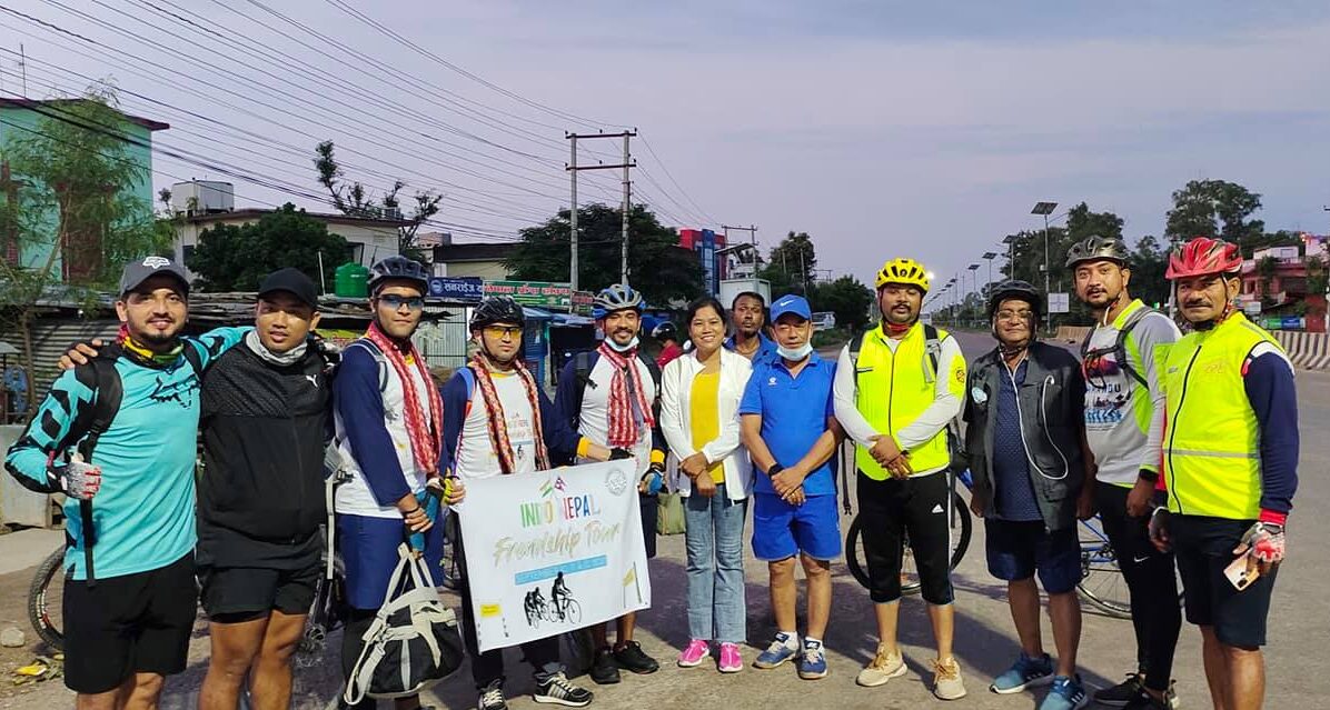 बाँके / नेपालगन्ज साइक्लिङ क्लबले नेपाल भारत मैत्रीपुर्ण साइकल यात्रा सम्पन्न गरेको छ । यही भाद्र २५ गते देखि २७ गते सम्मको साइकल यात्रामा क्लवका अध्यक्ष गगन थापा, सदस्यहरु कविराम बुढाथोकी, श्रेय अग्रवालले सहभागी जनाएका थिए । सहभागीहरुले २५ गते बिहान राष्ट्रिय खेलकुद परिषद्का सदस्य सुमित्रा चौधरी, नेपालगन्ज उपमानगरपालिकामा वडा नं २ का अध्यक्ष सुनिल सिंह हमालले विदाई साथै पुर्ण यात्राको शुभकामना ब्यक्त गर्नु भएको थियो ।