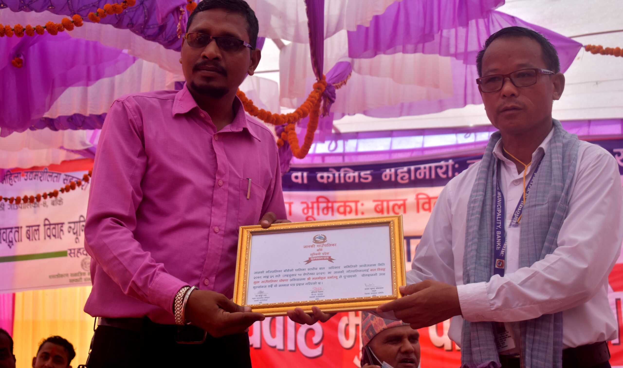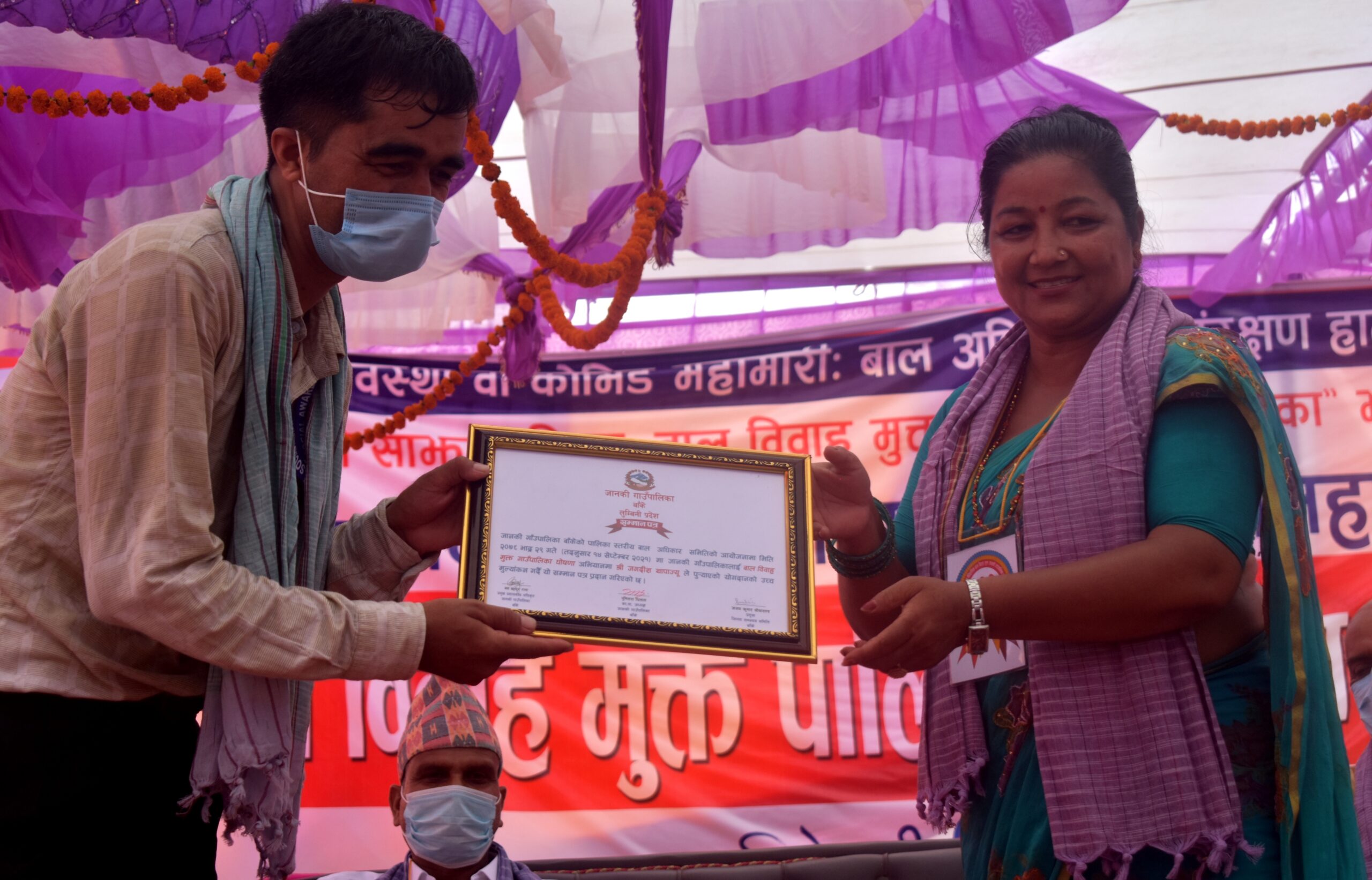 घोषणा समारोहका अवसरमा पालिकामा बाल विवाह मुक्त बनाउनका लागि सहयोग गर्ने व्यक्ति तथा संघ सस्थाहरुलाई सम्मान पत्रले कदर प्रदान गरिएको छ । मंगलबार गाउँपालिकाले एक समारोहका बीच भब्यरुपमा पालिकालाई जिल्लाकै पहिलो वाल विवाह मुक्त पालिका घोषणा गरिएको हो ।