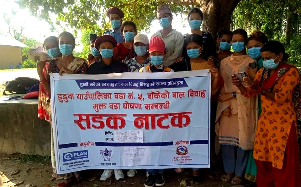 डुडुवा(बाँके)/ बाल विवाह रोकथाम परियोजना अन्तर्गत सामाजिक सचेतन सरोकार मन्च(स्याक नेपाल) र प्लान नेपाल ईन्टरनेशनलको साझेदारीमा सडक नाटक सम्पन्न भएको छ । समुदायमा बाल विवाह विरुद्ध जनचेतनामूलक सन्देश प्रवाह गर्न स्याक नेपालले डुडुवा गाउँपालिकामा सडक नाटक संचालन गरेको छ ।