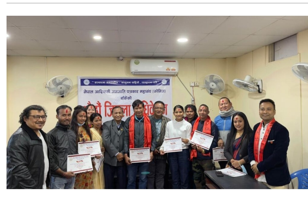 नेपालगन्ज । नेपाल आदिवासी जनजाति पत्रकार महासंघ फोनिज बाँकेको छैठौं जिल्ला अधिबेशन सम्पन्न भएको छ । अधिबेशनबाट..