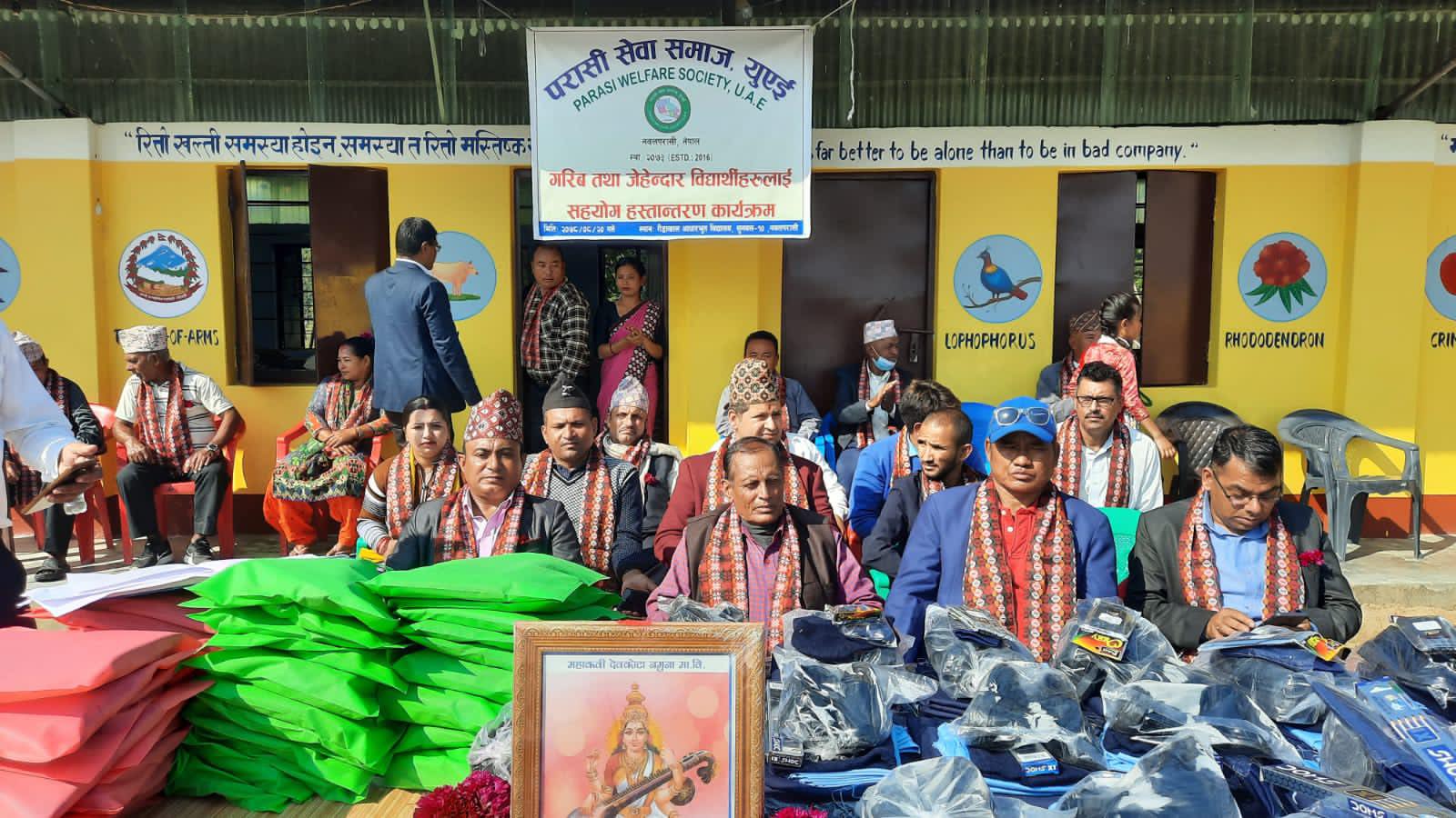 सुनवल / सुनवल नगरपालिका वडा न १० मा अवस्थित गैडाखाल आधारभुत बिधालयमा विविध कार्यक्रम बिच परासी सेवा समाज युएइ..