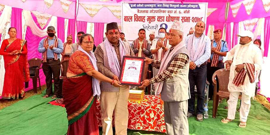 बैजनाथ / बैजनाथ गाउँपालिकाको वडा न ६ लाई आज बाल विवाह मुक्त वडा घोषणा गरिएको छ । बैजनाथ गाउँपालिकाका अध्यक्ष मान..