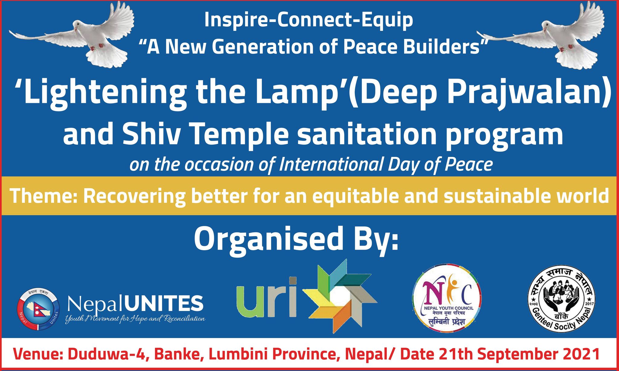 डुडुवा। बाँकेको डुडुवा गाउँपालिकामा विश्व शान्ति दिवस मनाईएको छ । २१ सेप्टेम्बर अर्थात विश्व शान्ति दिवशको..