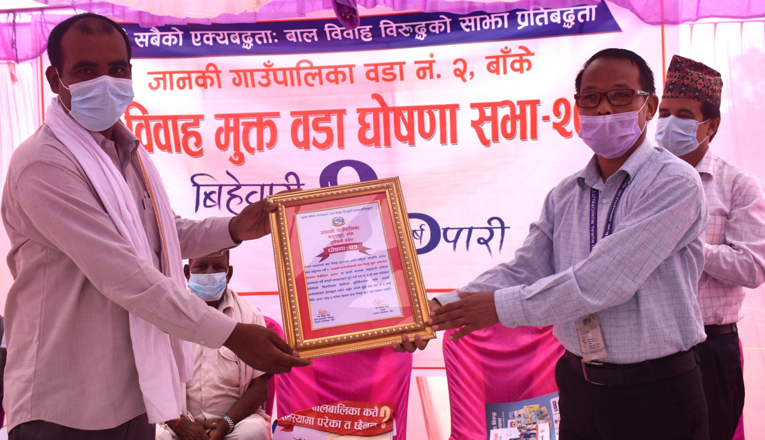 जानकी गाउँपालिकाको वडा नं.२ पनि बालविवाह मुक्त वडा घोषणा