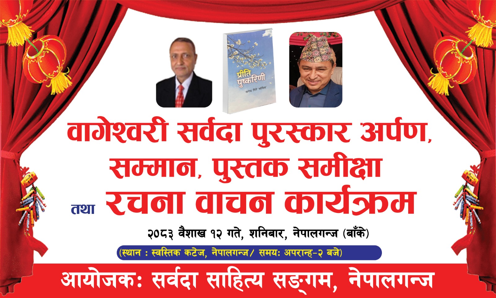 नेपालगन्जमा ‘वागेश्वरी सर्वदा पुरस्कार’ अर्पण तथा पुस्तक समीक्षा कार्यक्रम शनिबार हुँदै