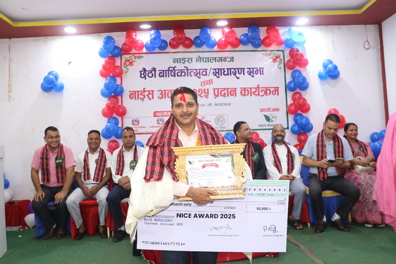 नेपालगञ्ज । नाइस अवार्ड २०२५ नेपालगन्ज उपमहानगरपालिका वडा नम्बर १९ निवासी वातावरण संरक्षण अभियन्ता हेमन्तराज..