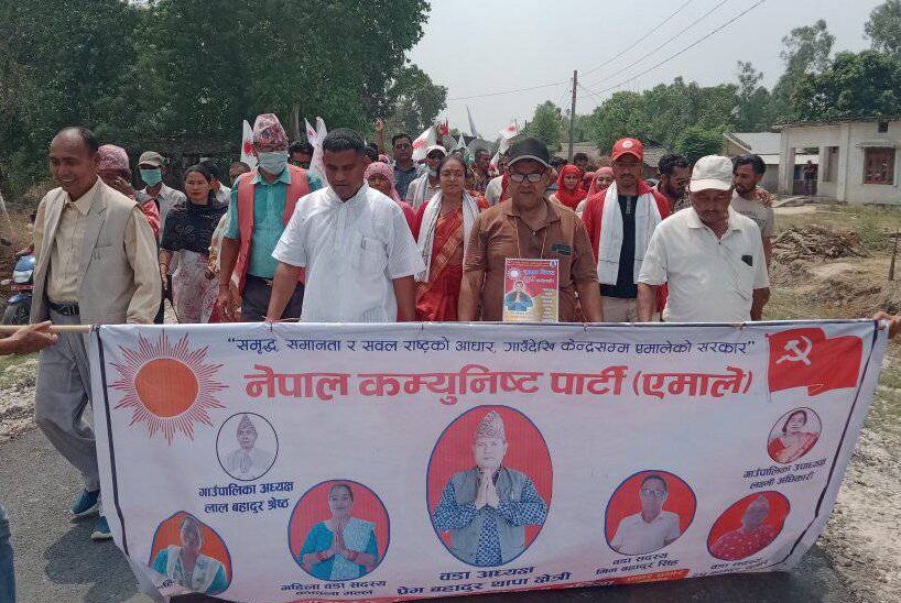 बढैयाताल(बर्दिया) । बर्दिया जिल्लाको बढैयाताल गाउपालिकाको वडा नं.१ शान्तिपुर गाउँमा नेकपा एमालेका उम्मेदवार..